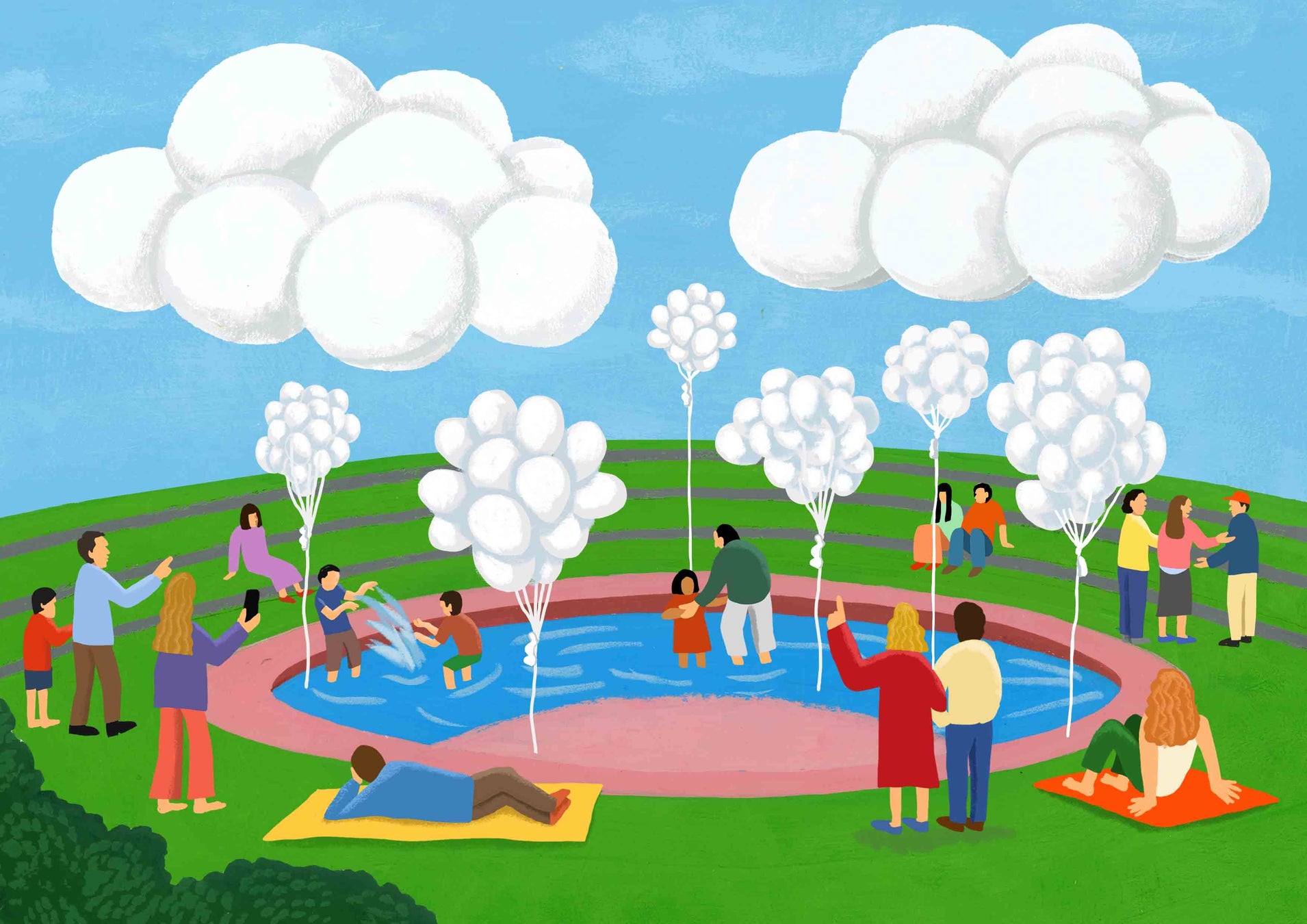 「あした、なにを楽しくする?」未来を楽しく過ごすために何ができるか、カードに書いてうめきたの空に浮かべよう!グラングリーン大阪が掲げる、みどりとイノベーションが融合する創造的な暮らし“MIDORI LIFE”に賛同する大学生グループ YMC(Young Midori Club)の発案をもとに、いろんなアイデアや人が集い大きな雲になります。
