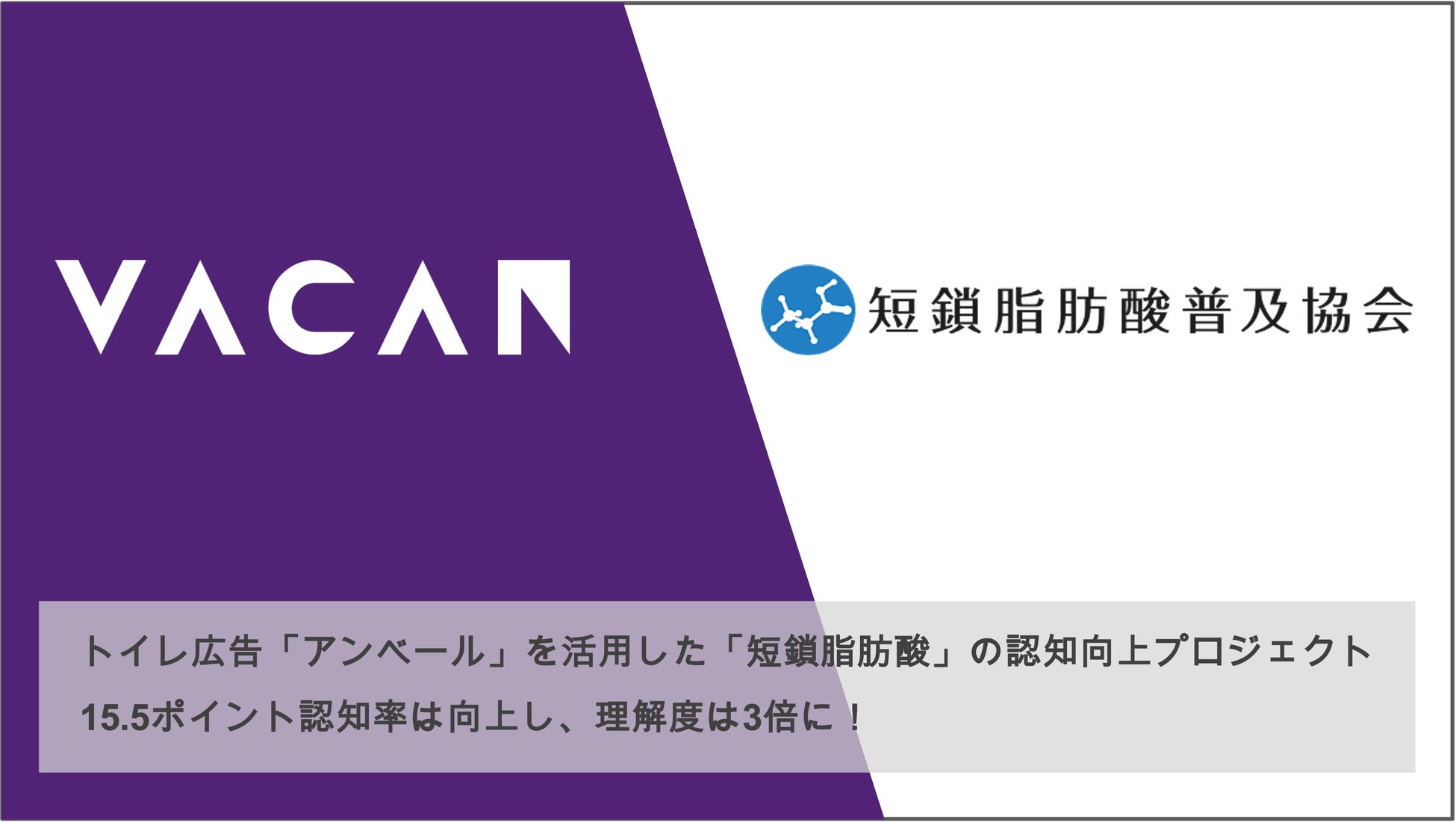 本調査は、バカンが展開するトイレ広告「アンベール」を活用し、2024年12月末から2025年3月までの3ヶ月間にわたって「短鎖脂肪酸」に関する研究データを配信した結果の視聴者の認知理解状況を調査したものです。