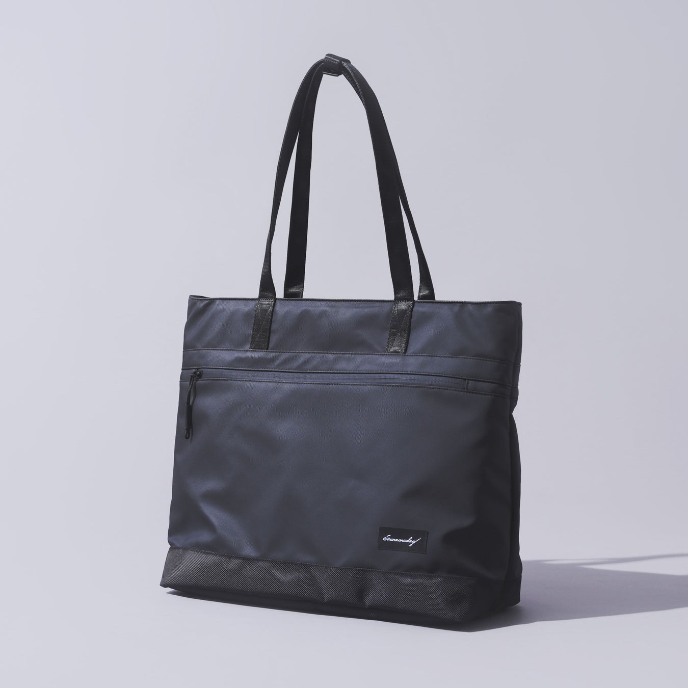 サウナとバッグの相性を考えると、背中が蒸れるリュックよりトートバッグがおすすめ。ハンドルは長めの設計にすることで服を着込んでも肩がけしやすくオールシーズン使いやすい。インナーに忍ばせたショートハンドルで手持ちもできる2WAY仕様。バッグ外側のメインファブリックにはナイロンの糸を高密度に織ったナイロンオックスフォード900Dを採用。両面に付いている外ポケットにはTPU素材の止水ジッパーを使用し、内部生地は水を弾くポリエステル素材にすることで、濡れたタオルや水着を直接収納することもできる。バッグ内側には16incのラップトップが収納できるPCポケット、ガジェットや着替えが収納できるメッシュポケット、時計やアクセサリーが収納できるショートポケット、鍵の取り出しに便利なキーリング、バッグの開閉ができるスナップボタンを装備。ビジネスライクなルックとサウナライフのための機能性が共存したSaunaonedayのシグネチャーアイテム。