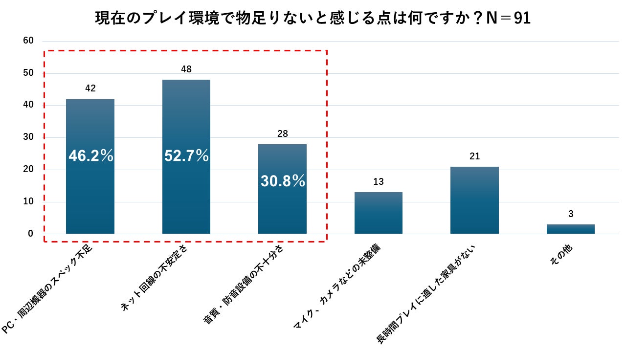 PCを利用したオンラインゲームを行うゲーマー、および配信などを行うストリーマーにとって、通信機器や住むエリアにも依存する回線速度の問題やPCのスペックの問題、そして建物の構造による音質、防音対策など、様々な不満を抱えています。コンマ数秒を争う世界で戦うプロゲーマーも同様で、こういった“インフラ”が敗因に繋がる恐れがあります。