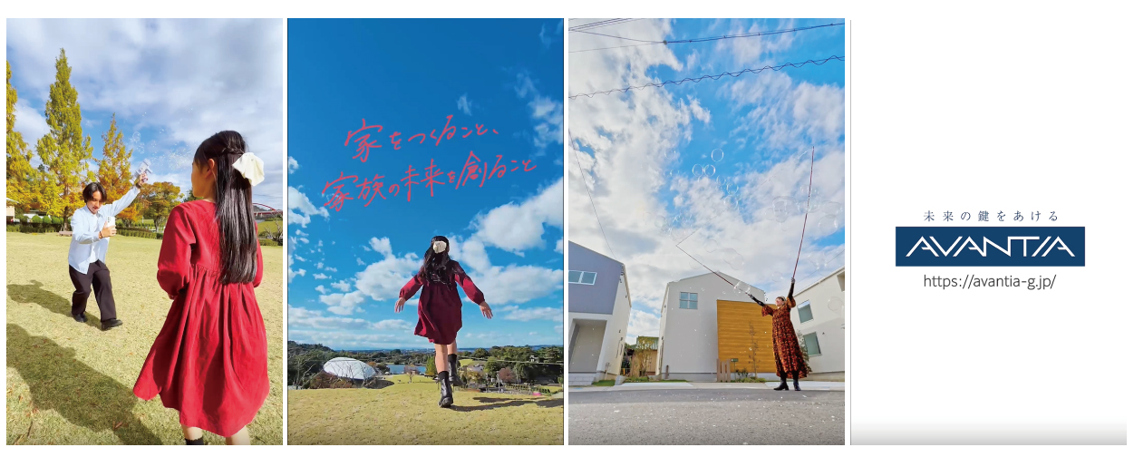 コンテンツ :AVANTIA戸建住宅の「美しいデザイン」「妥協を許さない品質」を訴求しながら、「家づくり」の面白さや楽しさ、新たな環境でスタートする生活のワクワク感を伝えるストーリー。撮影のメイキング映像など貴重な特典コンテンツも同時配信しながら、楽しんでいただきます。