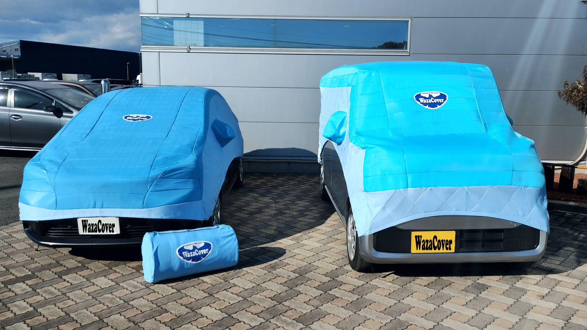 株式会社WazaCoverでは、2種類の自動車用雹カバー(汎用性)を展示します。