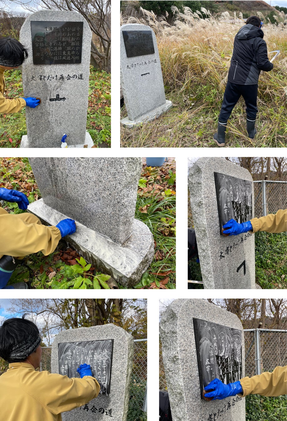 津軽の歴史を語る会前会長であり小説「津軽」の像記念館初代館長である柳澤良知さんが、太宰治がタケさんと実際に出会うまでに辿った道に建立されている6基の石碑の清掃を行い、石碑の存在をSNSで周知。