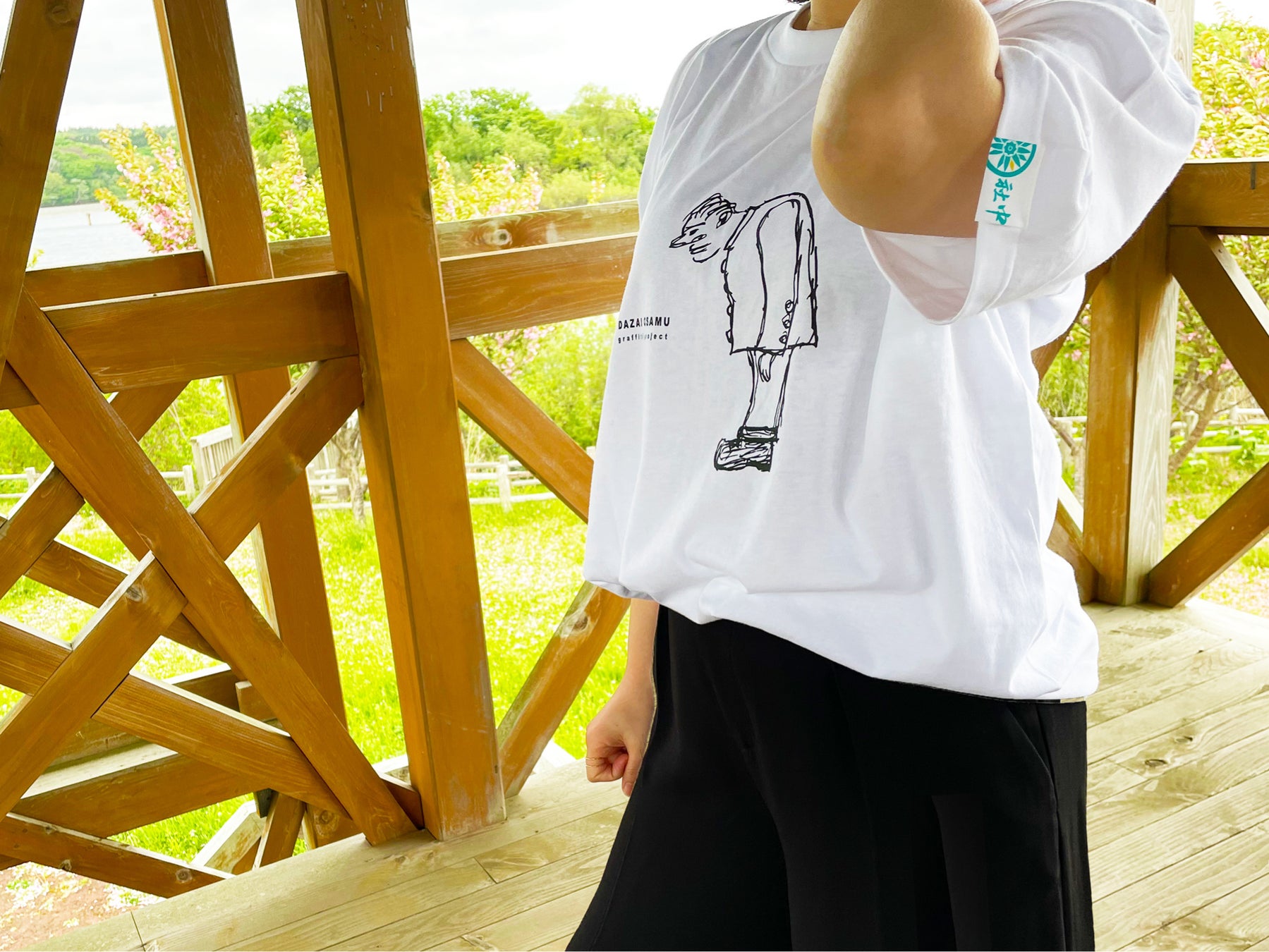太宰治グラフィティプロジェクトの第一弾として、社中が製作した中で一番人気の太宰治本人が描いたイラストをアイコンに、厚手生地の定番Tシャツと軽くて着やすい昨今のトレンドであるビッグシルエットTシャツを製作しました。