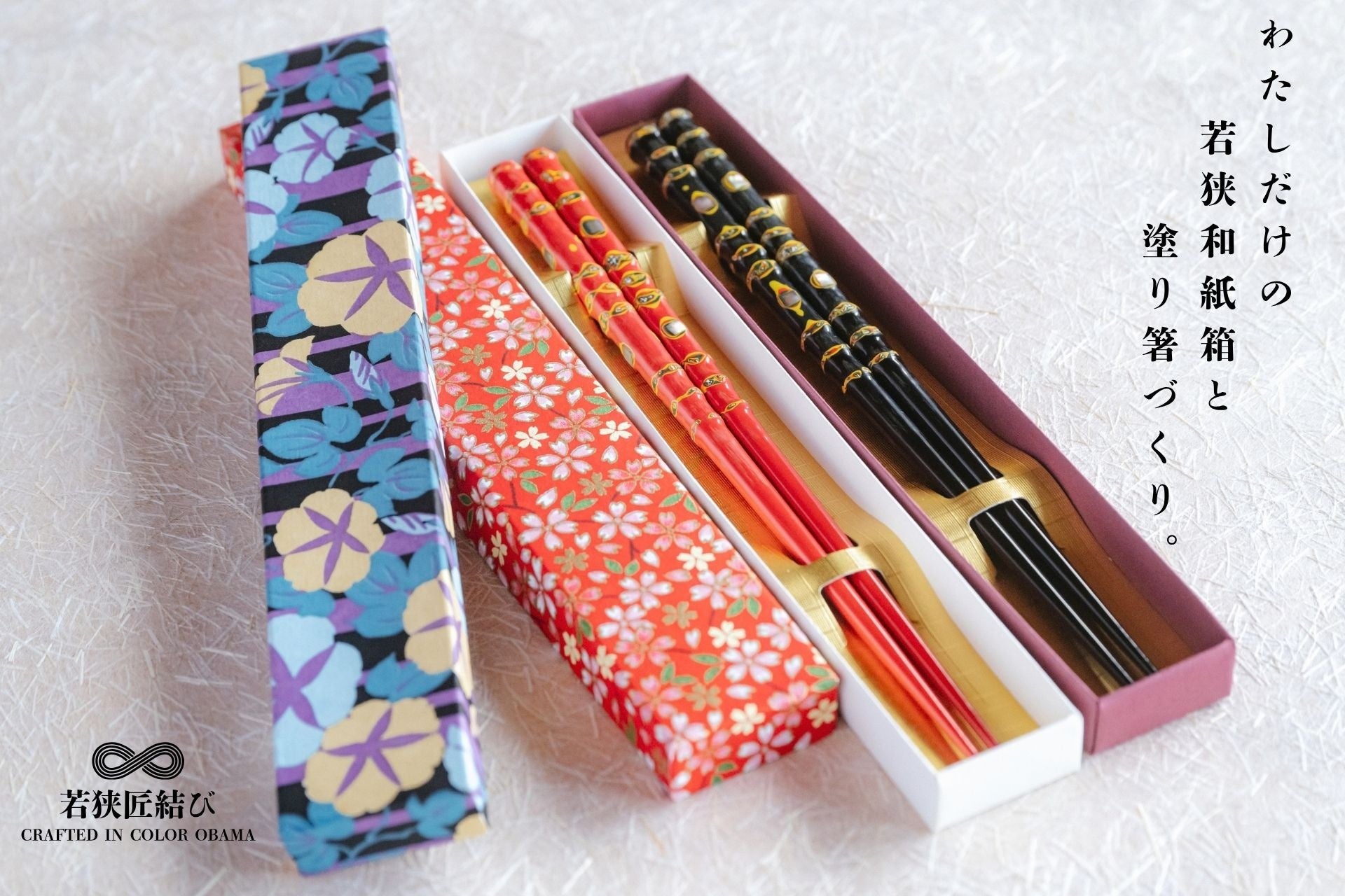 有限会社高鳥紙業(福井県小浜市/代表:高鳥義雄)は、2026年4月22日(水)より、福井県小浜市の伝統工芸を体験型プロジェクトとして提供する地域工芸ツーリズムプロジェクト「CRAFTED IN COLOR OBAMA(若狭匠結び)」を開始いたします。第1弾プロジェクトは「若狭塗り箸削り × 若狭和紙箱づくり体験」(税込5,500円/約2時間)。開始を記念し、小浜市在住の方を対象に先着50名様を無料でご招待します。体験後には小浜市内の観光スポットを巡る回遊プランもご案内し、工芸体験をきっかけに小浜のまち全体の魅力を体感いただけます。