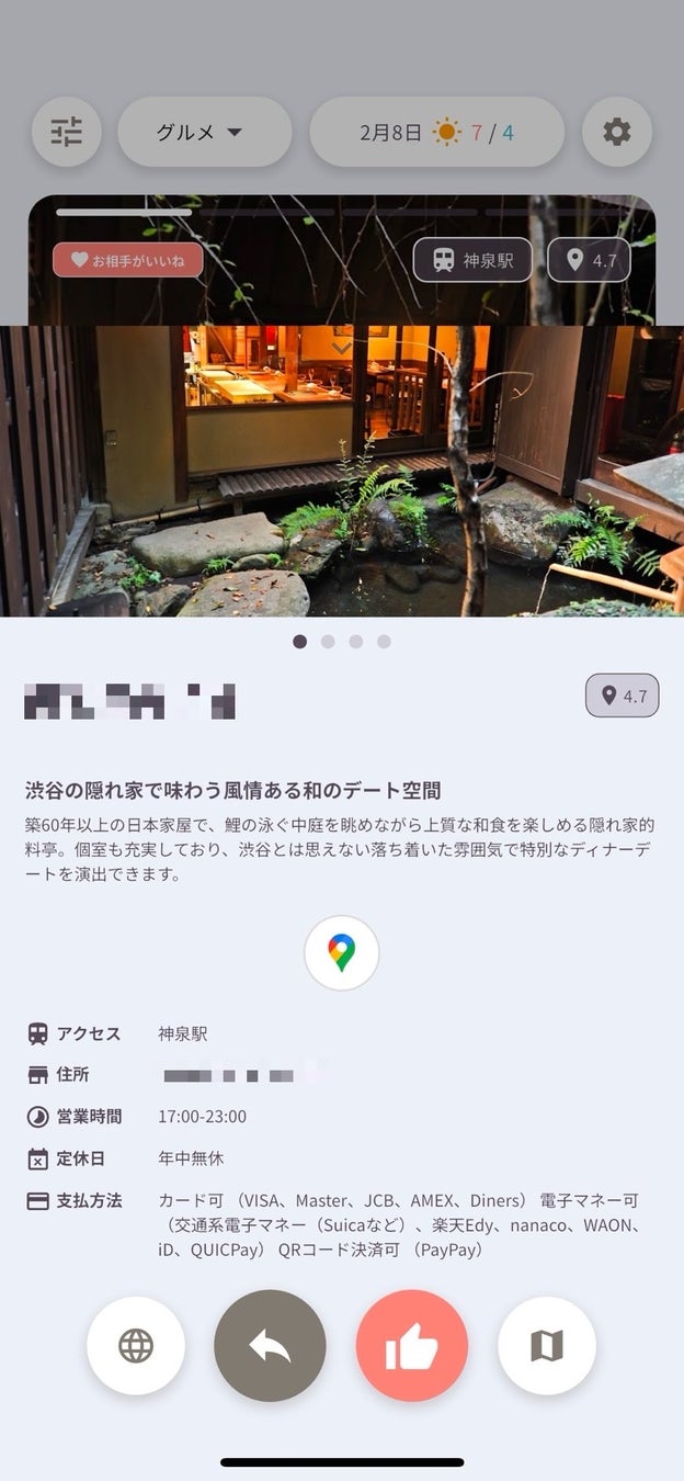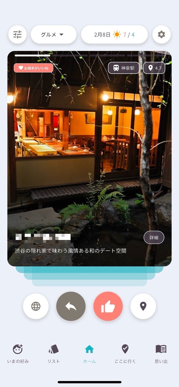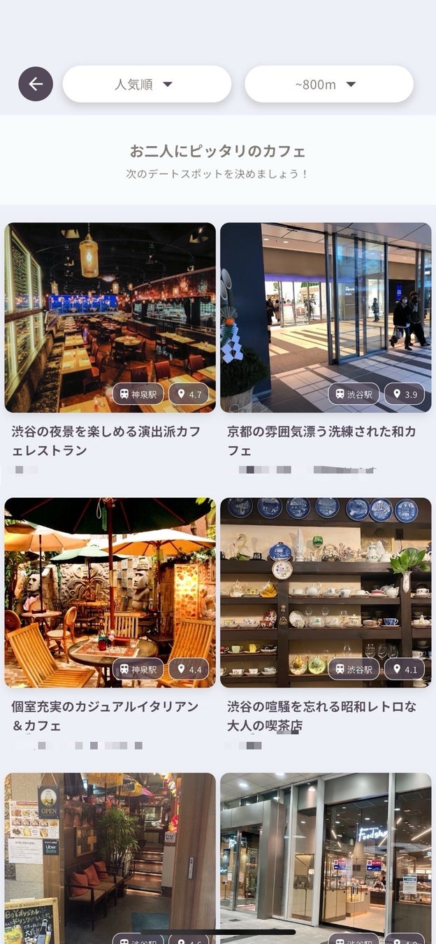 ⚫︎直感的なスワイプ操作で気になるデートスポットを絞ることができます。