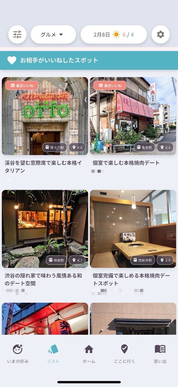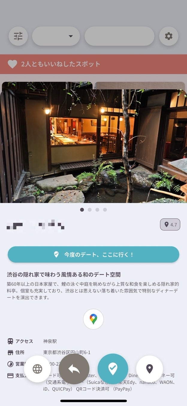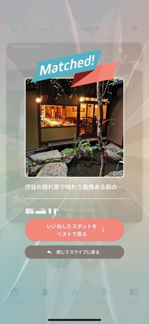 ⚫︎お互いが「いいね」を押したスポットでマッチングします。また、パートナーが「いいね」を押したスポットを見ることもできます。