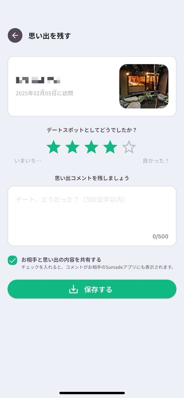 ⚫︎日記のようにデートの思い出を記録でき、パートナーと感想を共有できます。