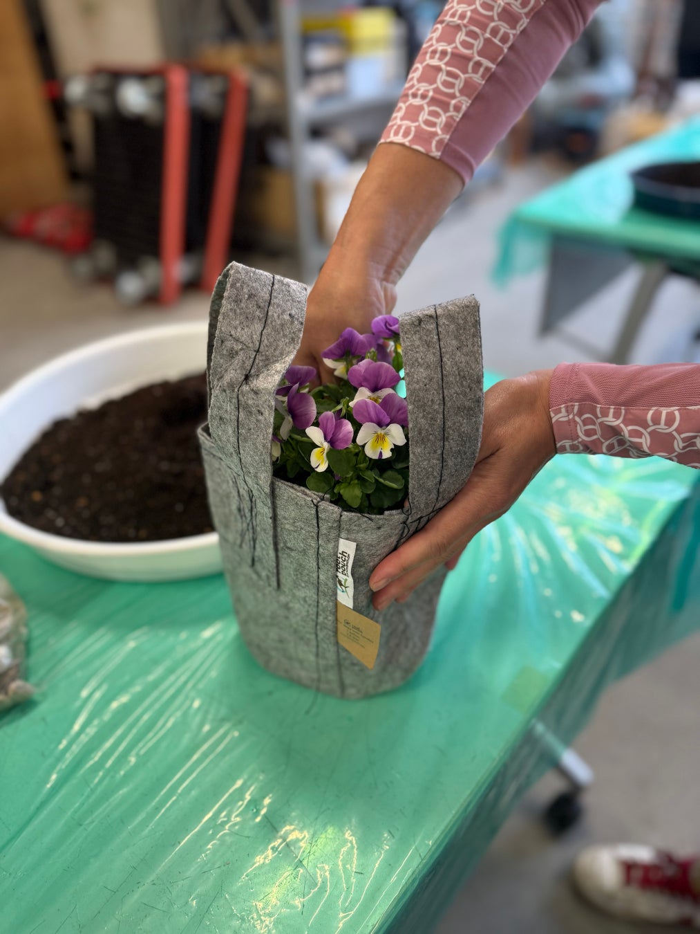 馬ふんを用いた肥料を使って、参加者全員で花を寄せ植え。馬と人との共生、馬を通じた自然と人とのかかわりを考える環境学習のきっかけになってほしいです。