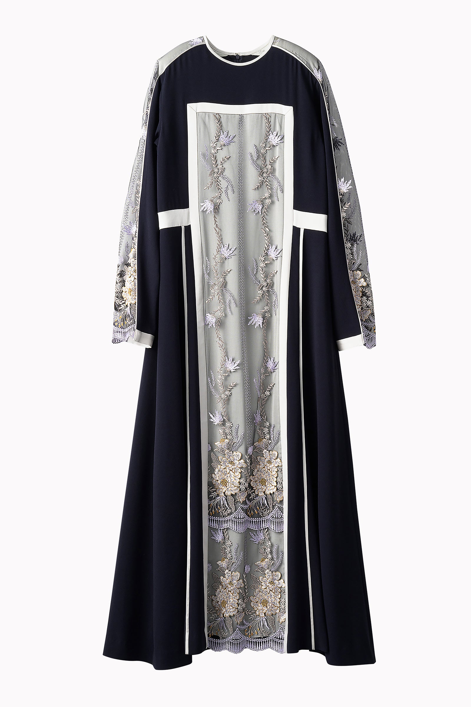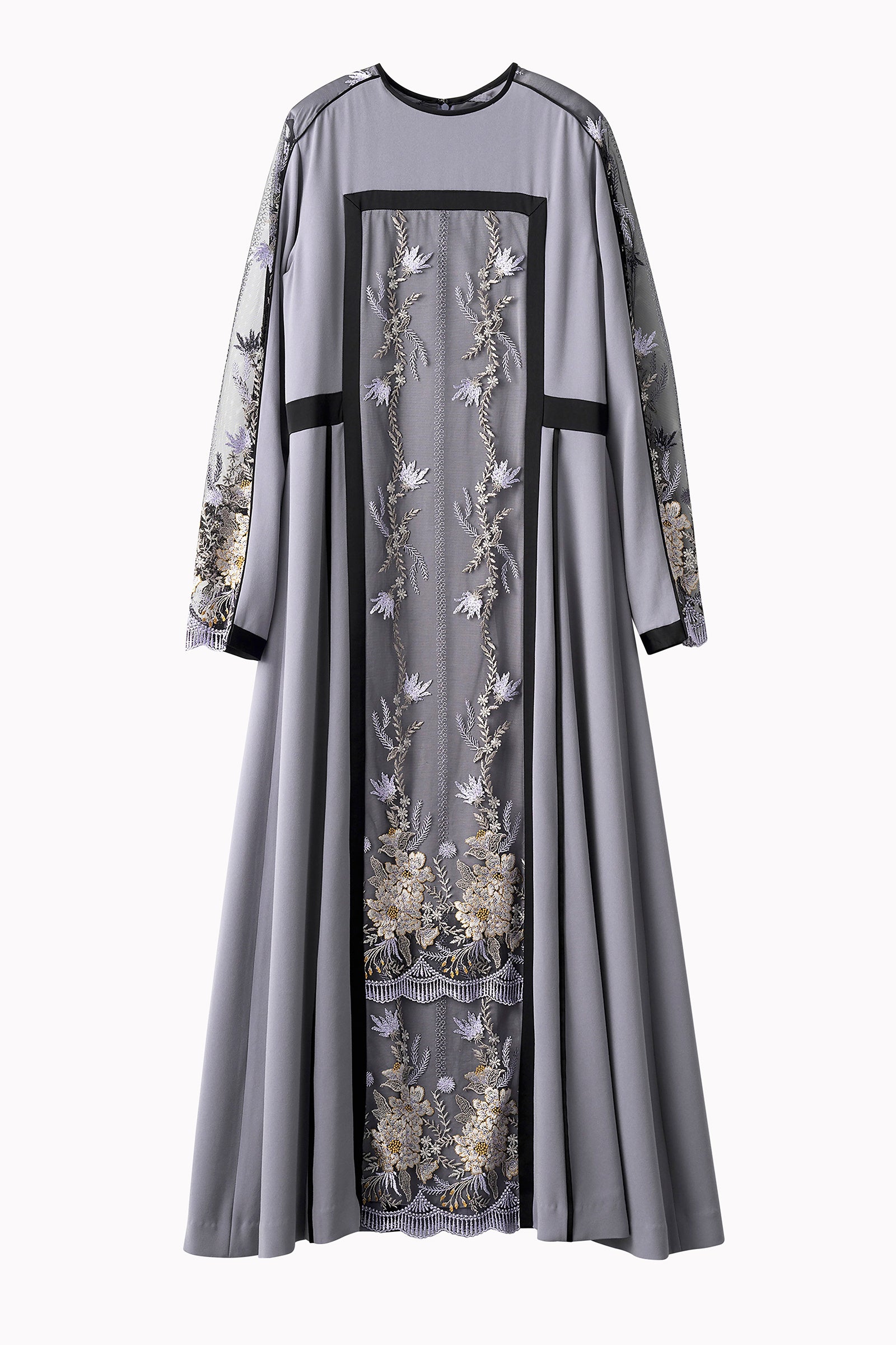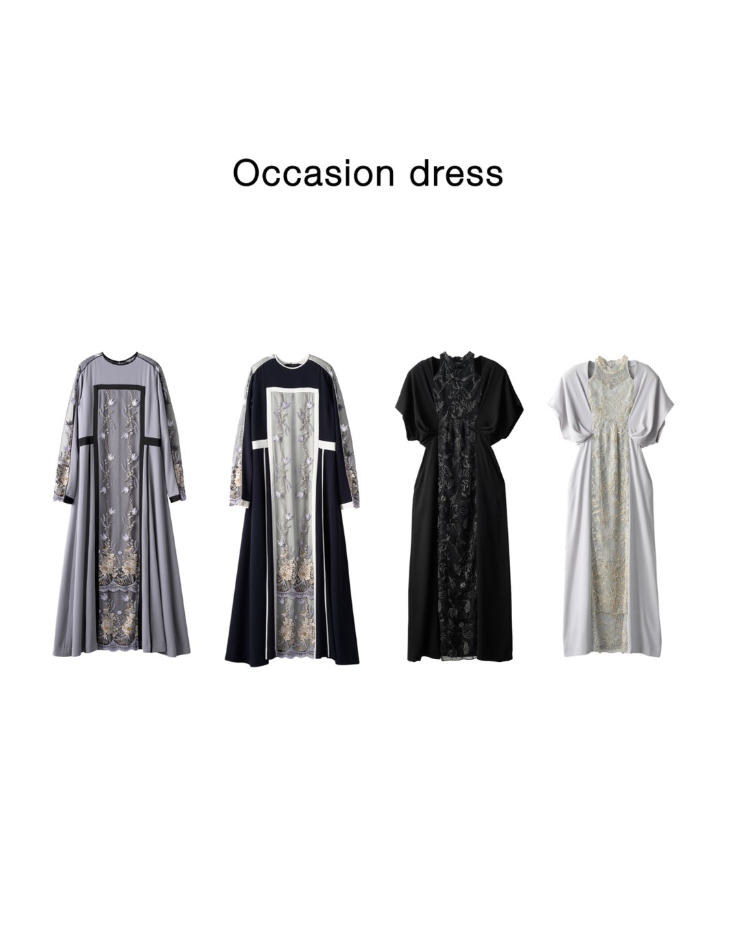 画像左から)Framed flower lace dress (Purple) ¥66,000(税込)/Framed flower lace dress (Navy) ¥66,000(税込)/Seem flower lace dress (Black) ¥66,000(税込)/Seem flower lace dress (Gray)¥66,000(税込)