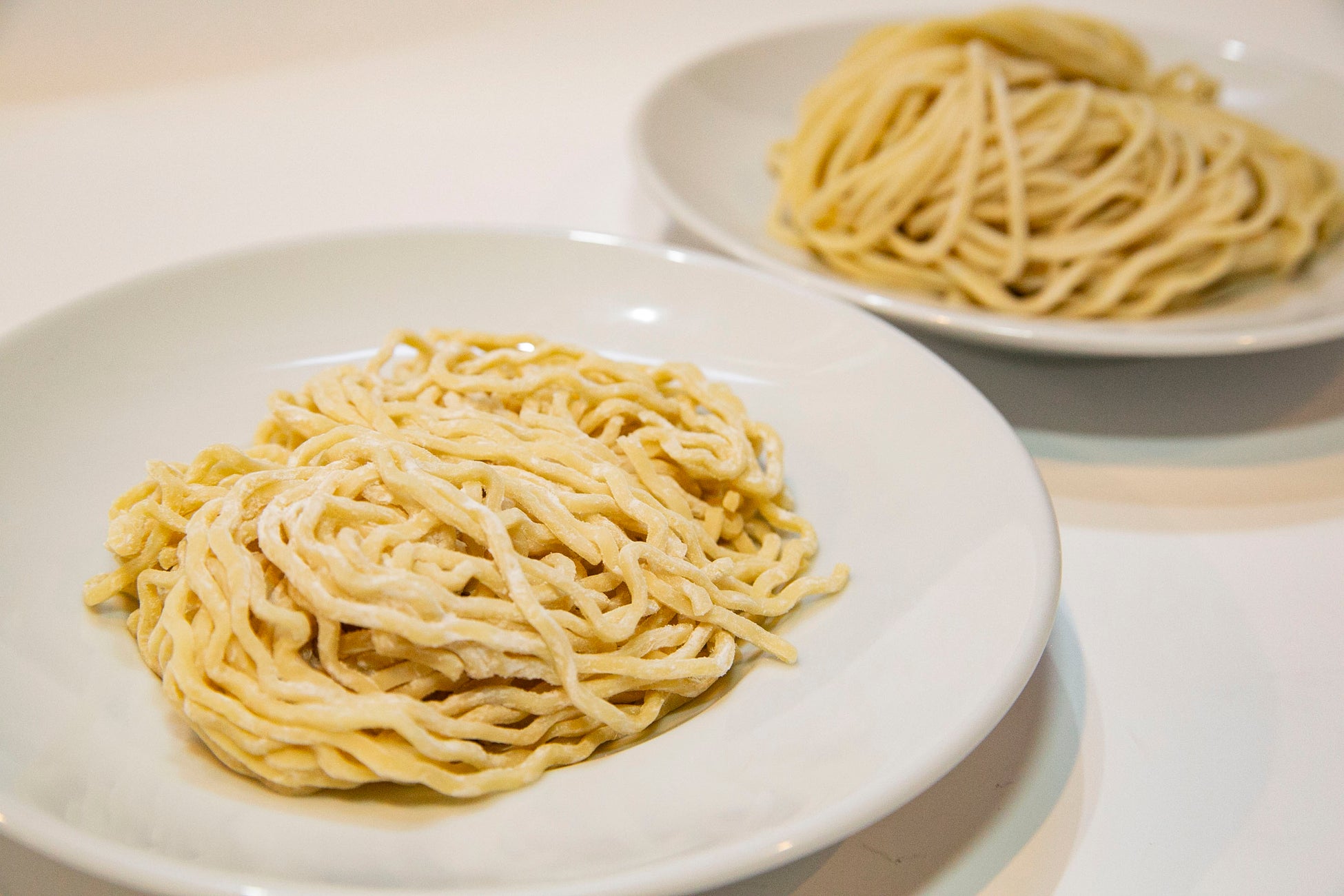 無駄を省きあえてシンプルに「小麦」と「水」だけで練った麺は、小麦本来の風味と食べ応えが特徴。