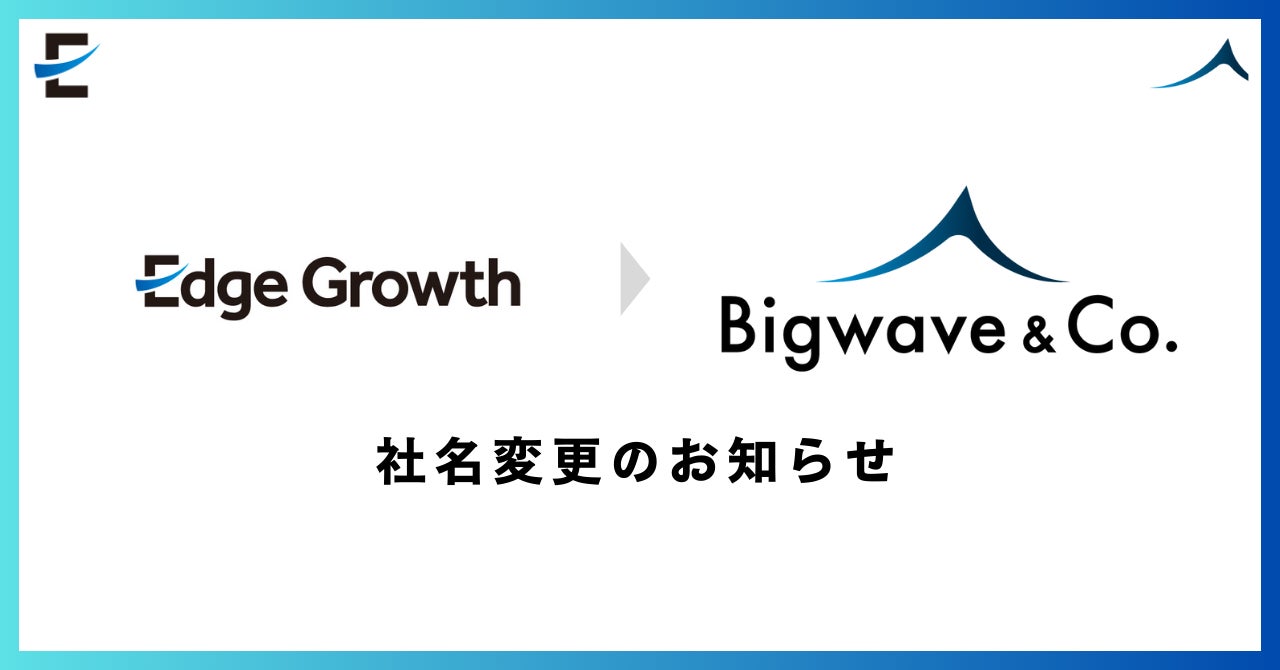 EdgeGrowth合同会社(本社:神奈川県横浜市、代表社員:大波 周一)は、2026年2月27日付で会社名を「ビッグウェーブ・カンパニー株式会社(英語表記:Bigwave & Co.)」へ変更し、コーポレートブランドのフルリブランディングを実施しました。
