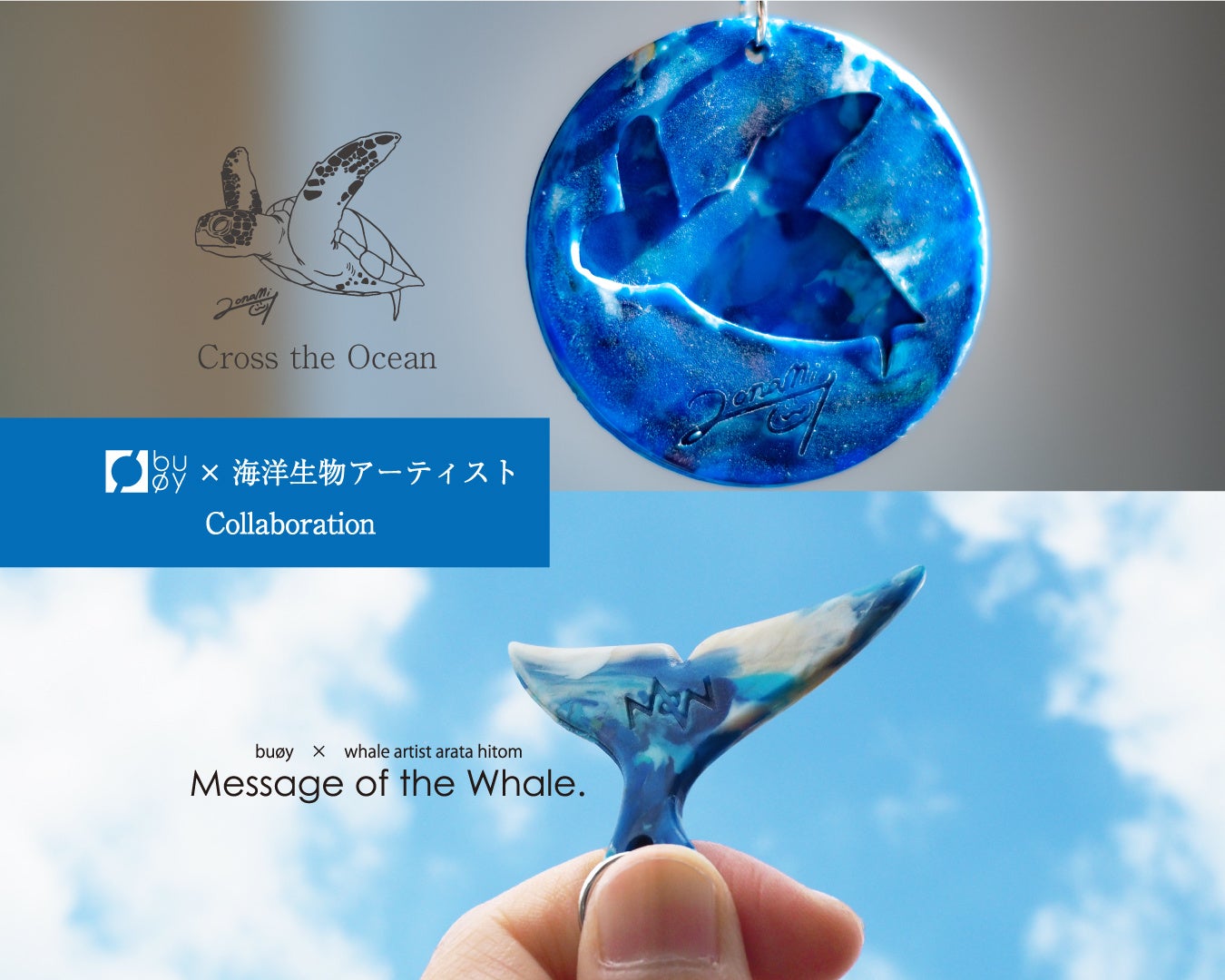 日本各地に漂着した海洋プラスチックごみを材料にカラフルなプロダクトに生まれ変わらせ、海洋ごみ問題とのつながりを提供するブランド「buoy(ブイ)」を展開するbuoy株式会社(https://www.buoy.yokohama/)は、2025年2月5日(水)に、ホエールアーティストのあらた ひとむ氏と水棲生物画家の繁田穂波氏とのコラボレーション製品の正式発売を開始いたします。
