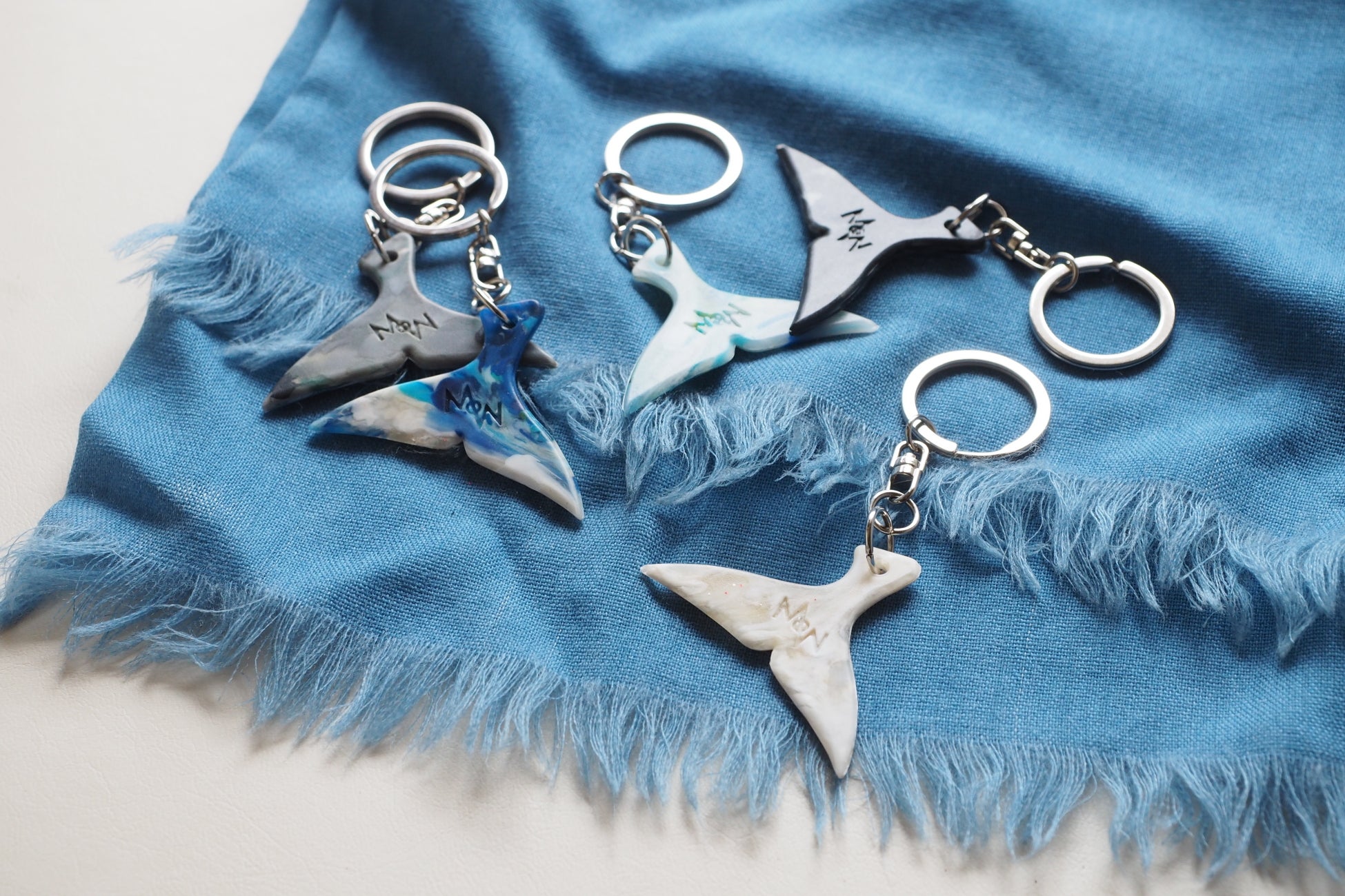 MOW(Message of the Whale)は、海洋プラスチックゴミからクジラをはじめ、多くの海洋生物を守りたいという強い思いからデザインされた、セミクジラの躍動感ある尾ビレをモチーフにしたキーホルダーです。