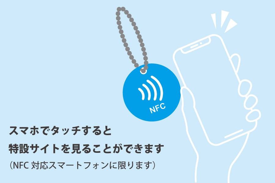 さらに、今回のコラボキーホルダーには期間限定で特別仕様の「NFCタグキーホルダー」が付属。スマートフォンをかざすことで、特設サイトにアクセスできる仕組みになっています。このNFCタグキーホルダーにも海洋プラスチックを使用しており、環境への配慮とデジタル技術を融合させた製品となっています。