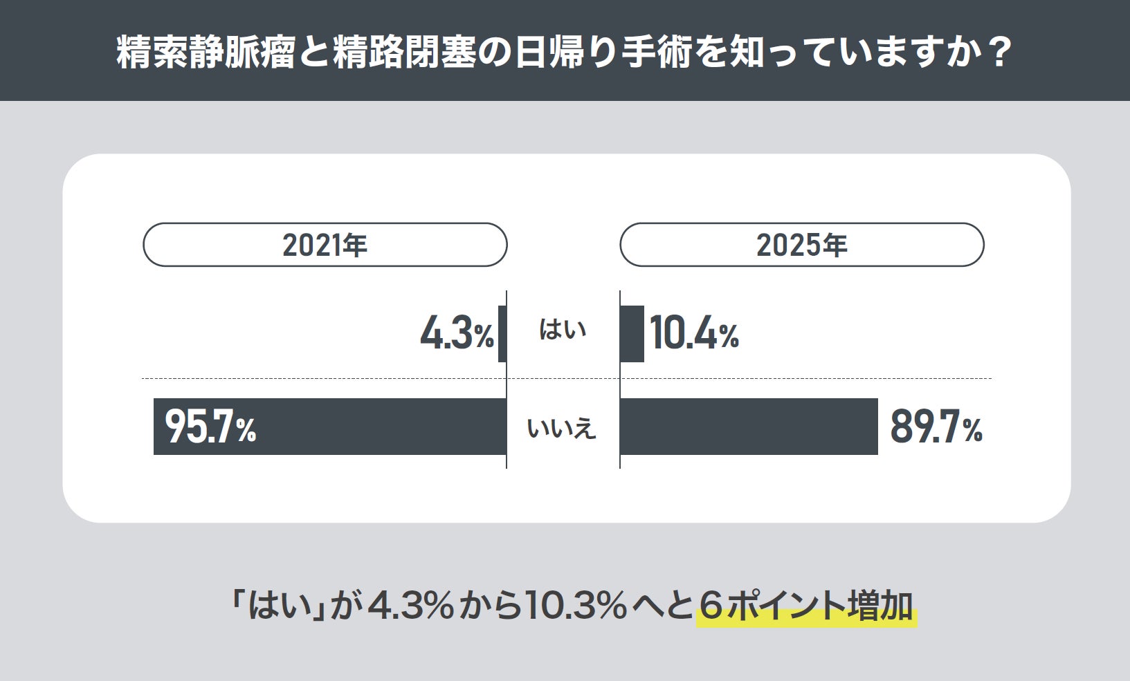 「精索静脈瘤と精路閉塞の日帰り手術を知っている」 4.3% → 10.4%(約2.4倍)