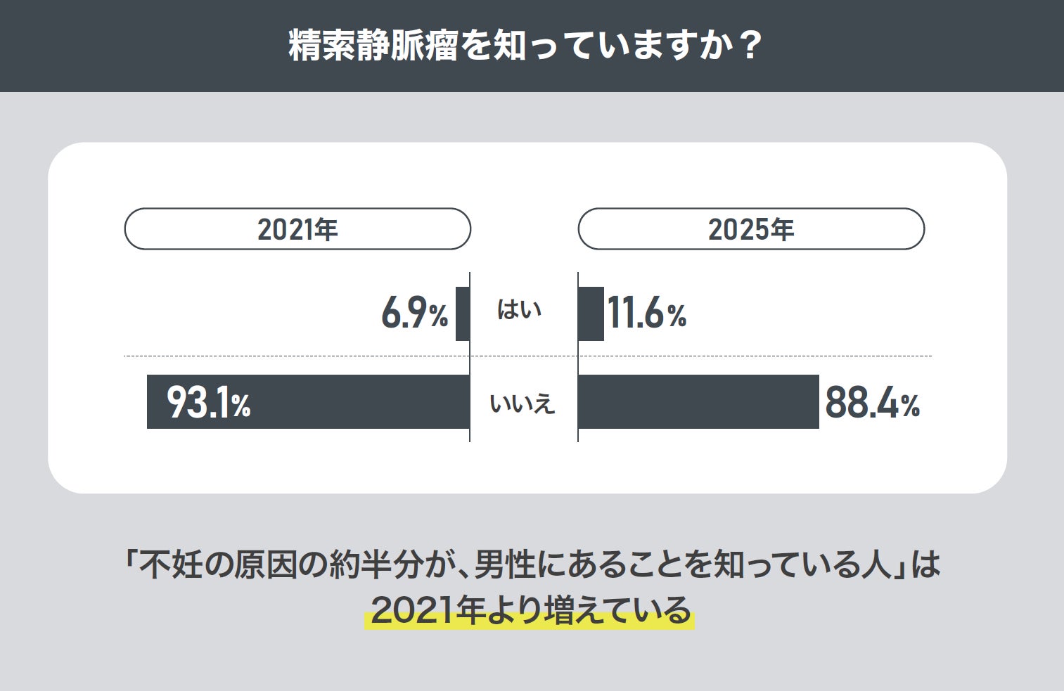 「男性不妊の原因のひとつである精索静脈瘤は、実は治療可能な疾患です。今回の調査結果からも、徐々にその認知が広まりつつあることが伺えます。しかし、依然として多くの方が『不妊は女性の問題』と捉えている現状も根強くあります。