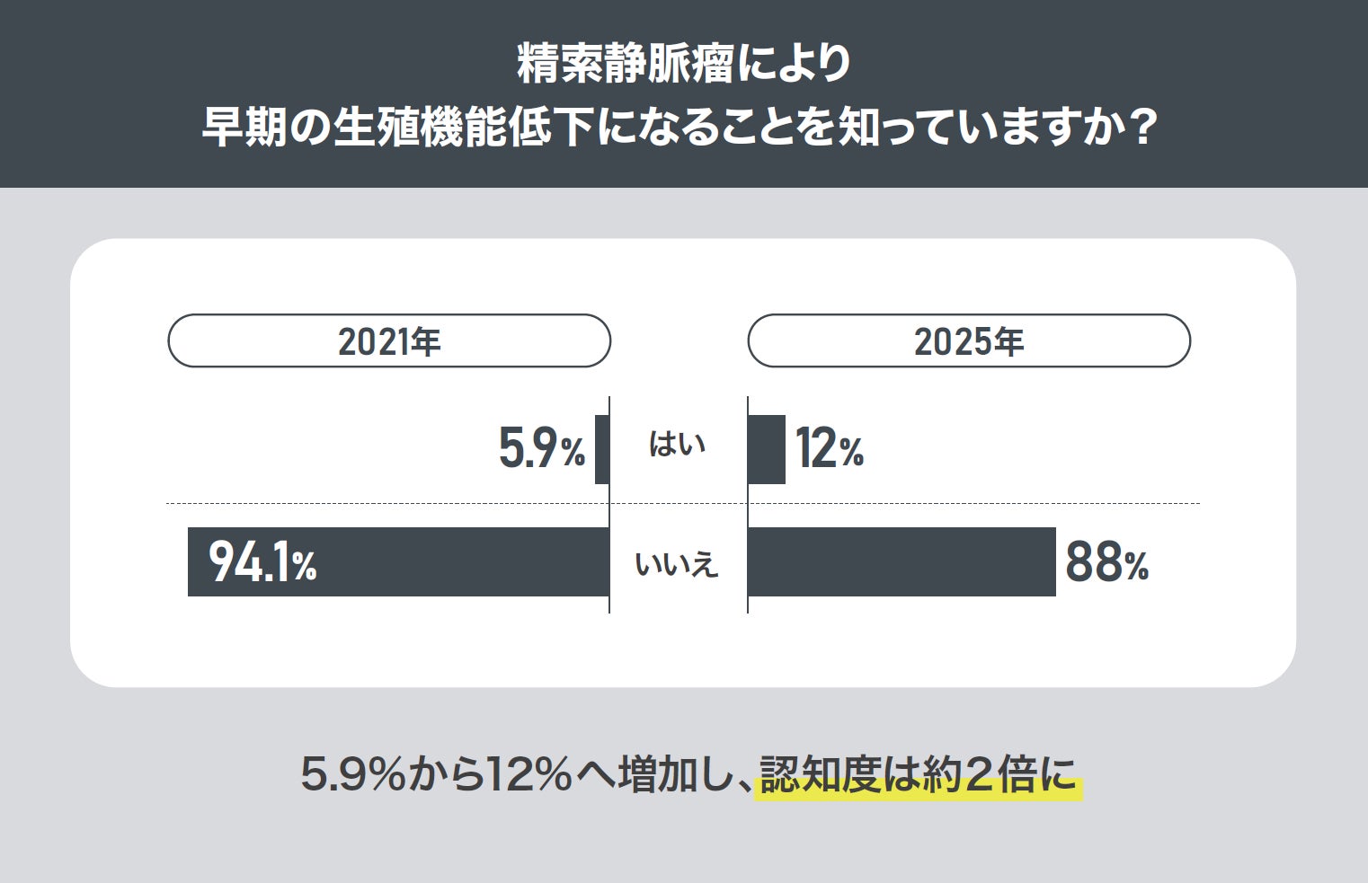 「精索静脈瘤により早期の生殖機能低下になることを知っている」 5.9% → 12%(約2倍)