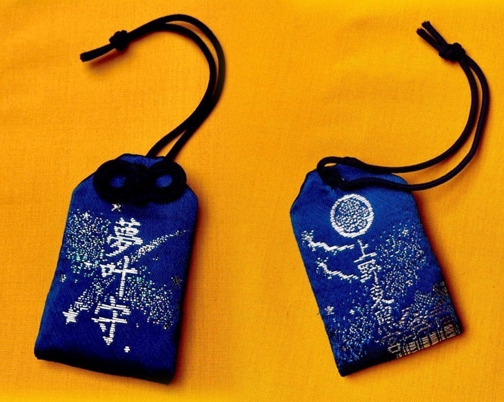 ライトアップ期間限定の「夢叶守」(800円)は特に人気。星空と夜の社殿と、空を飛ぶ龍がモチーフです。この龍は上野東照宮の唐門(重要文化財)に左甚五郎が彫ったと伝わるもので、夜になると空を飛ぶ伝説があります。