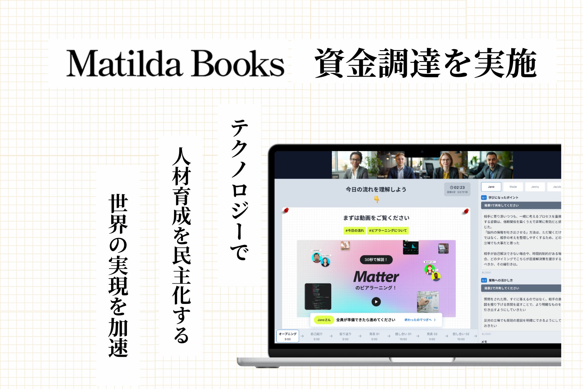 組織内のスキル可視化と育成を一体で実現するSaaS「Matter」を展開する株式会社Matilda Books(東京都渋谷区、代表取締役:百野 拓也、以下:当社)は、QXLV(東京都港区、代表取締役:古谷 健太郎、以下:クオンタムリープベンチャーズ)から資金調達を完了したことをお知らせいたします。調達した資金はプロダクト開発を進めるとともに、エンジニア人材の採用活動と組織づくりを強化していきます。誰もが当たり前に学び、成長し、自分の人生を選択する社会の実現に引き続き取り組んでまいります。