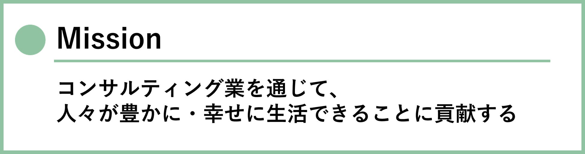 コンサルティング業を通じて、人々が豊かに・幸せに生活できることに貢献する |