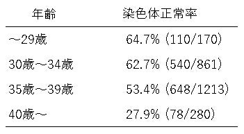 年齢別の染色体正常率や男女比率等の貴重なデータを初公開します。
