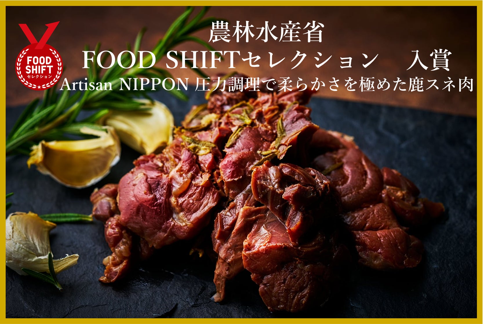 株式会社 日本食材社が展開するブランド「ArtisanNIPPON」より、「木更津“天然”ぼたんSteak haché」および「木更津産 圧力調理で柔らかさを極めた鹿スネ肉」が、農林水産省が推進するニッポンフードシフト表彰事業「FOOD SHIFTセレクション」において、全国の選定産品の中から入賞いたしました。