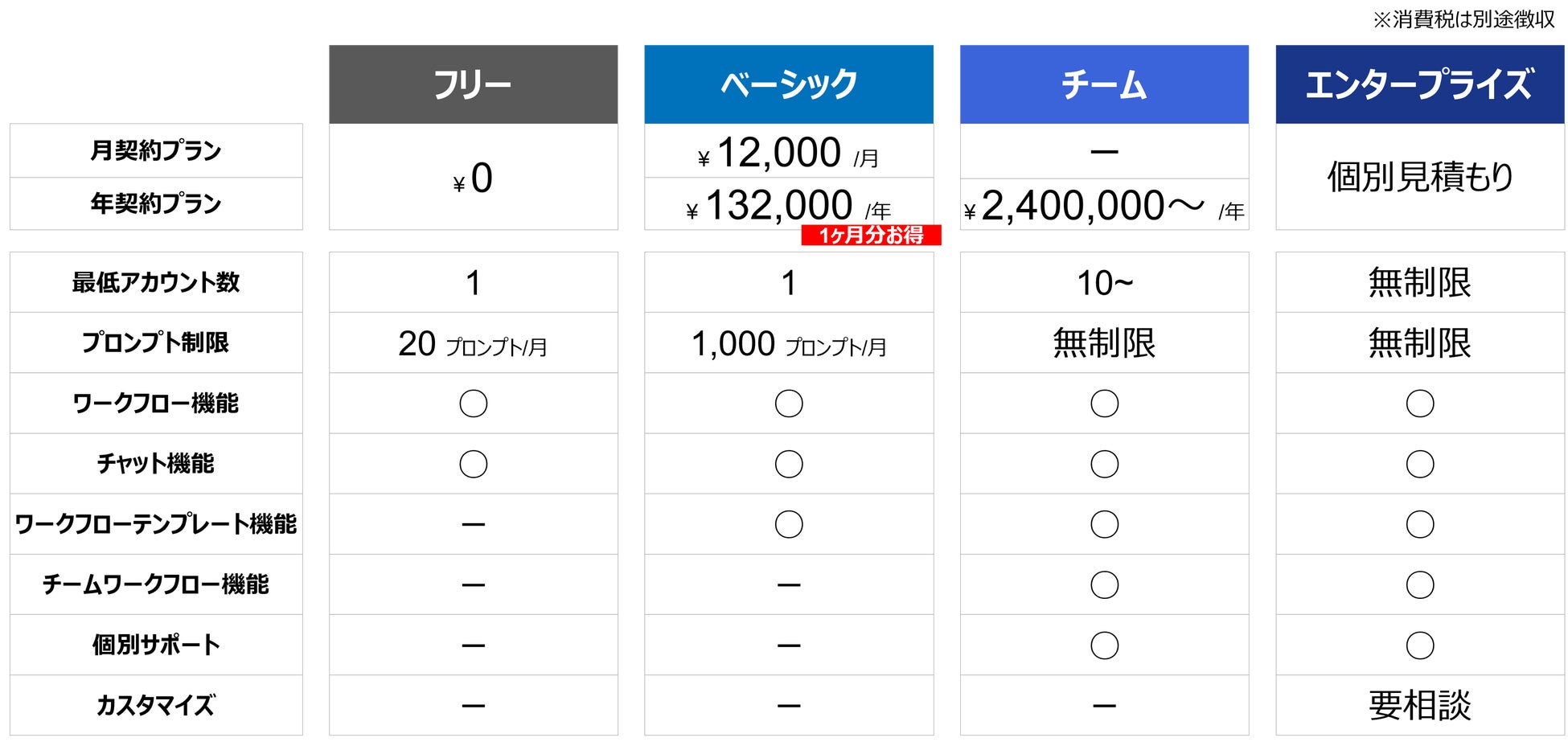 DataTranslatorは、3つの有料プラン(ベーシック、チーム、エンタープライズ)を設定しており、導入を検討しているユーザー向けにフリープランもご用意しています。