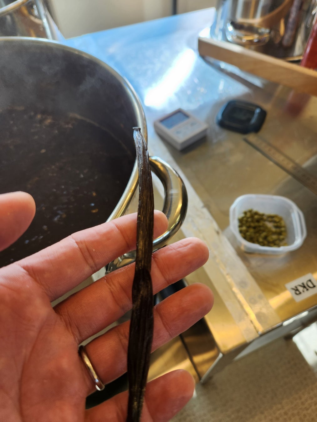 デザートビールとは言っても使用する原材料は水と麦芽とホップ、最後にバニラビーンズを加えるのみ。カカオは入れておらず、濃色麦芽を多く使用することでチョコレート感を表現。