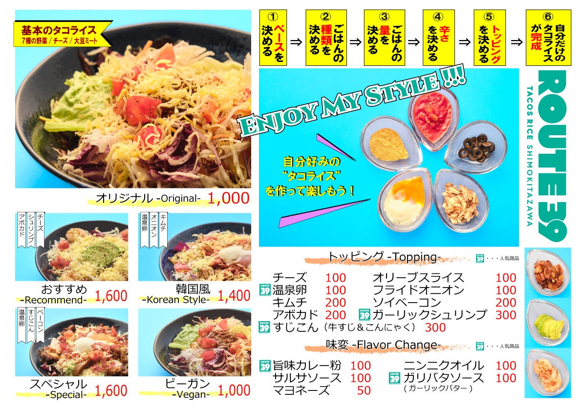 あなた(カラダ)想いのタコライス専門店「下北沢タコライス ROUTE39(ルートサンキュー)」グランドオープン!!