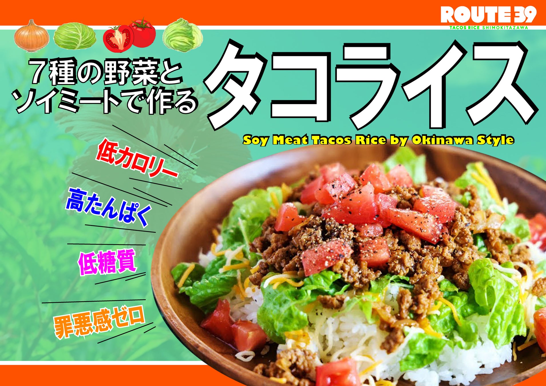 7種の野菜と大豆ミートで仕上げる「低カロリー」「低糖質」「高たんぱく」「罪悪感ゼロ」の優しいタコライス専門店です。