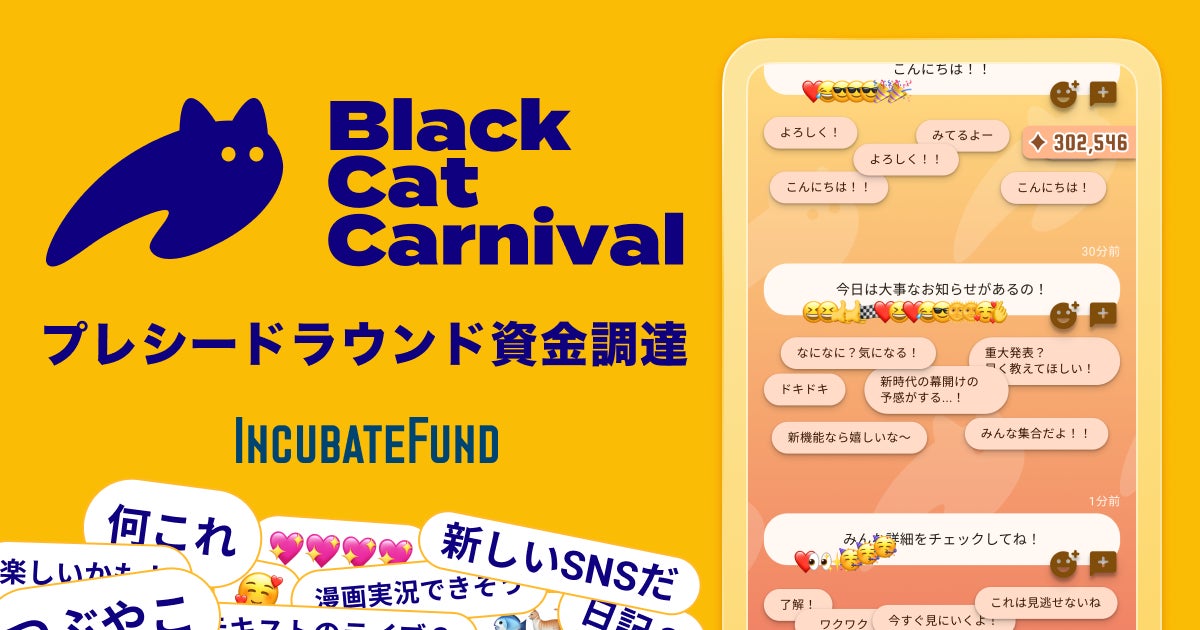 ショートSNSを運営するブラックキャット・カーニバル株式会社、プレシードラウンドにてインキュベイトファンドより資金調達を実施