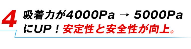 4. 吸着力が4000Pa → 5000PaにUP!安定性と安全性が向上。