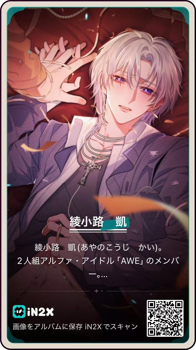 今回の提携により、物語の中心人物である「綾小路凱(あやのこうじ・かい」がiN2X内に登場。ユーザーはまるで彼と“つながっている”かのような、リアルタイムでのコミュニケーション体験や特別ストーリーイベントを楽しむことができます