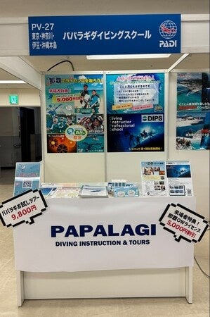 【パパラギダイビングスクール】の出展ブースでは、特に注目される「パパラギ インストラクターアカデミー」や、中高年ダイバー向け復帰プログラム「プラチナ」について、詳しい説明と個別相談が可能です。また、当ブースでしか得られない貴重な情報や特典も多数ご用意しております。プロインストラクターを目指す方から久しぶりの復帰を考える方まで、ぜひお気軽にお立ち寄りください。