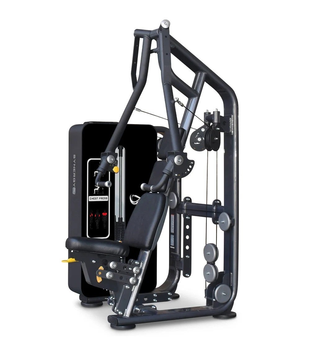 胸のワークアウトを生物力学的に優れたものにするチェストプレスマシンです。頭上の回転軸から腕を押し出す軌道が、自然で安全な身体の動きを可能にします。 このマシンの最大の特徴は、左右のアームが独立して動くユニラテラル(片側)動作に対応している点です。片腕ずつトレーニングを行うことで、筋力バランスを均等に整え、より効果的な発達を促します。また、特許技術「Bilateral Stability Control」が身体の安定性を高め、常に正しいフォームを維持できるようサポートします。 ガスアシスト式のシートは座ったまま簡単に高さ調整ができ、ウエイトの変更も着席したままアクセス可能です。高重量のウエイトスタックを標準装備しており、初心者から上級者まで、あらゆるレベルの方に快適でスムーズなトレーニング体験を提供します。