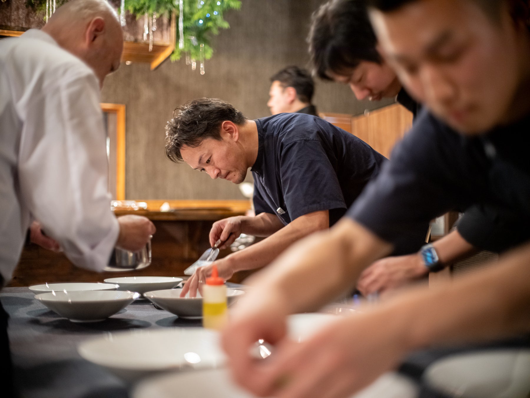 ミシュランシェフ吉武広樹氏と地域の腕利きシェフ6名が数ヶ月かけて試行錯誤の末に完成したメニュー7品が当日お披露目された。地域の食文化の向上を目的に開発した料理のレシピはシェフ及び地域で共有され、参加シェフ各店舗で提供される。