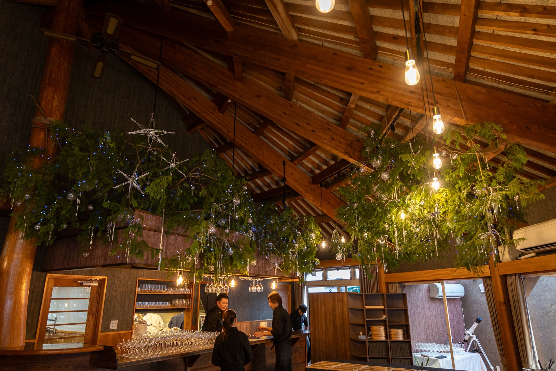 美星町で開催されているテロワール・レストラン「星降るレストラン」の高付加価値版として一夜限りで開催された「星降るレストランSUPERIOR」。演出家「能勢聖紅」氏により装花の演出が施されたメインダイニング&星空テラス席で、ゲストシェフのSola 吉武広樹シェフと地域の腕利きシェフ6名が共同開発した特別なコース料理が振る舞われました。ペアリングドリンクのベースは日本茶とし、アクセントで茶酒や地域産のワインを差し込んだ個性的なマリアージュも好評でした。