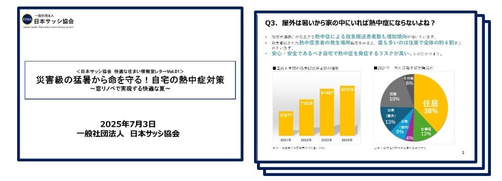 このたび、第一弾として、近年の「災害級の猛暑」から命を守るための自宅での熱中症対策に焦点を当てた情報「災害級の猛暑から命を守る!自宅の熱中症対策 ~窓リノベで実現する快適な夏~」を公開しました。本情報は、記録的猛暑や熱中症搬送の実態を解説し、快適な住まいを実現するための窓リノベーションがもたらす多角的な便益について、Q&A形式で詳しくご案内しています。