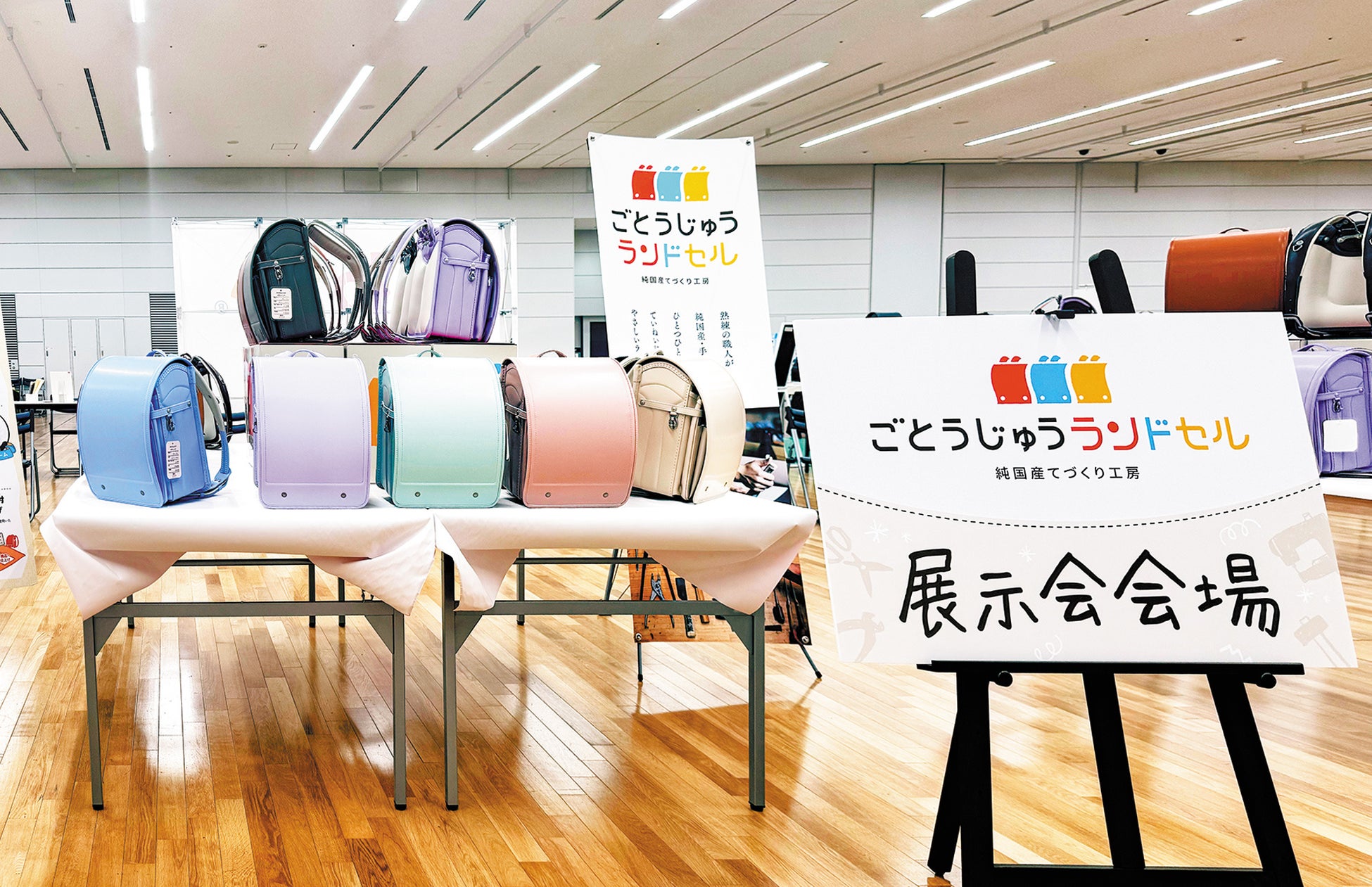 本社近辺にお住まいの方以外でも、実物をしっかり比較できる機会として、単独展示会(出張店舗)および合同展示会への出店を予定しています。実際にランドセルを手に取り、素材・デザイン・機能性をじっくり確かめることができます。
