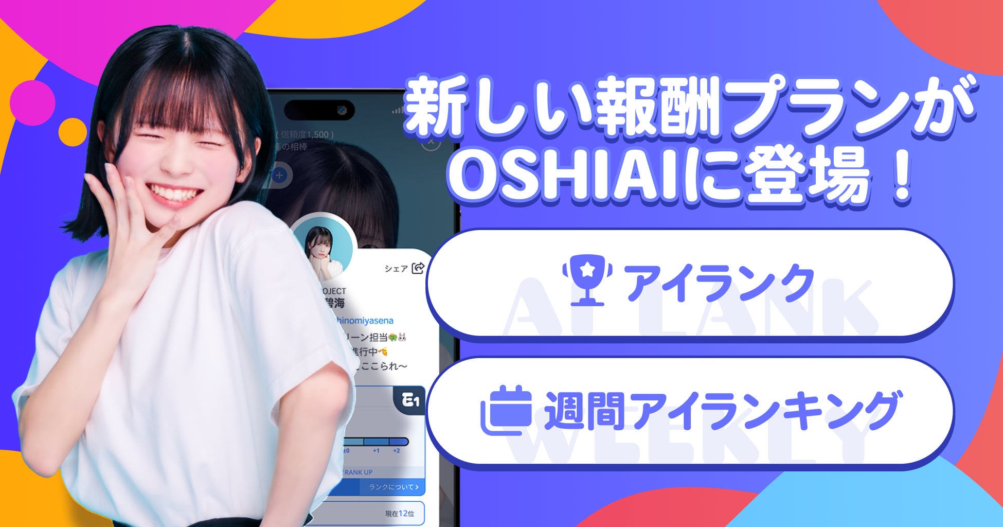 クリエイターへの新報酬プランが登場!AI推し活アプリ「OSHIAI」 に、新機能「週間アイランキング」と「アイランク」が実装!