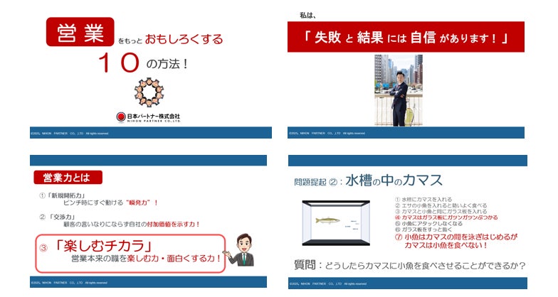 日本パートナー株式会社(営業部:名古屋市昭和区福江2-9-33 代表取締役 畑中 秀幸)は、2025年1月14日(火)に企業人財育成セミナー「営業を楽しくする10の方法」を実施しました。