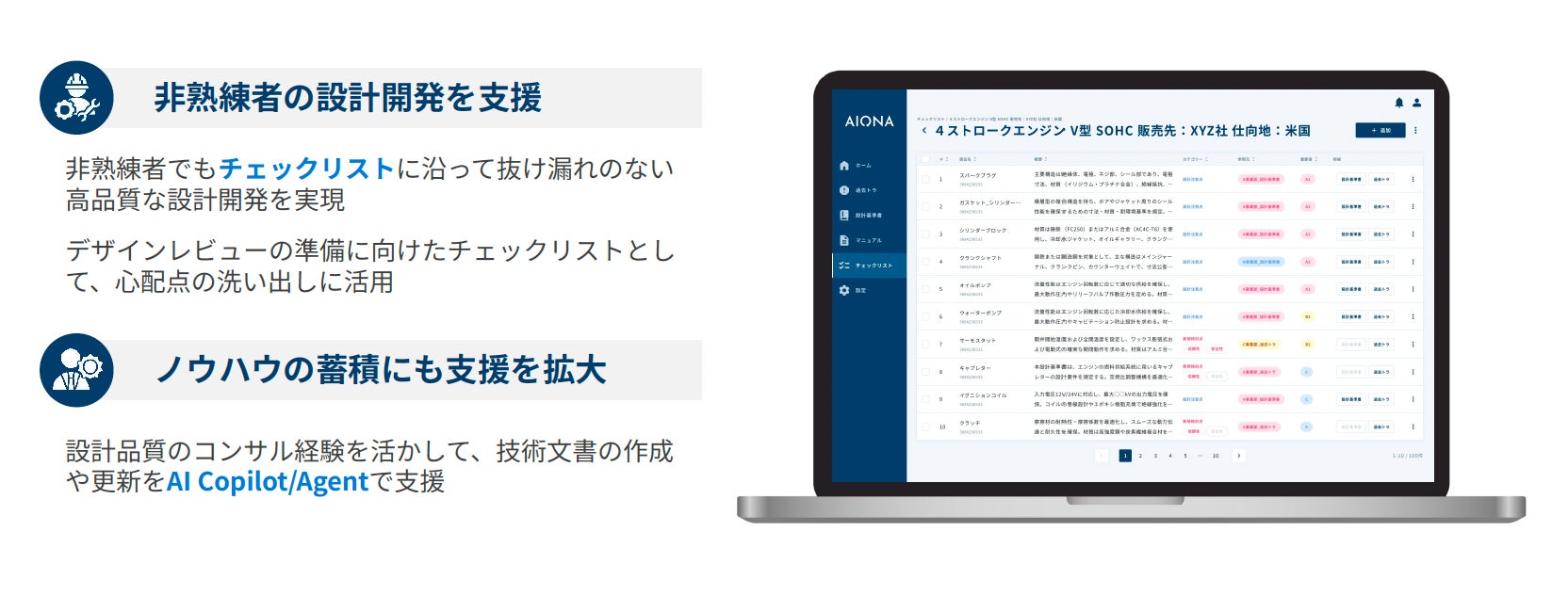 AIでモノづくりノウハウの活用を支援し、誰でも効率的に高品質な設計開発を実現できる社会を目指すAIONA株式会社(本社:東京都渋谷区、代表取締役:浅野友行、以下「当社」)は、「モノづくりのノウハウを活かして設計開発を支援するAIレビューアー」のデモンストレーション動画を公開しました。