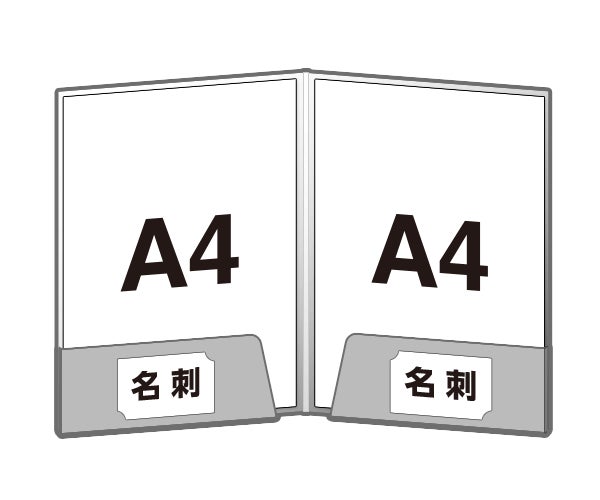 二つ折りにした内側の、紙を折り曲げてできるポケットにA4の資料を収納できる。