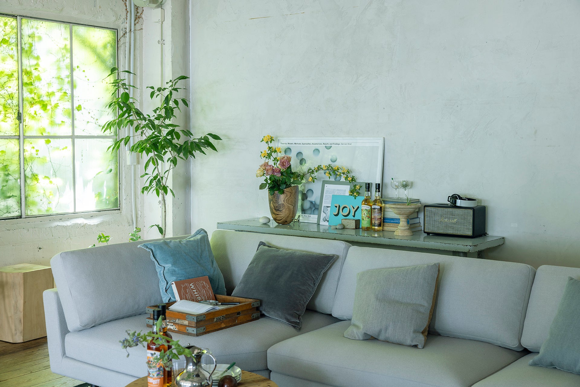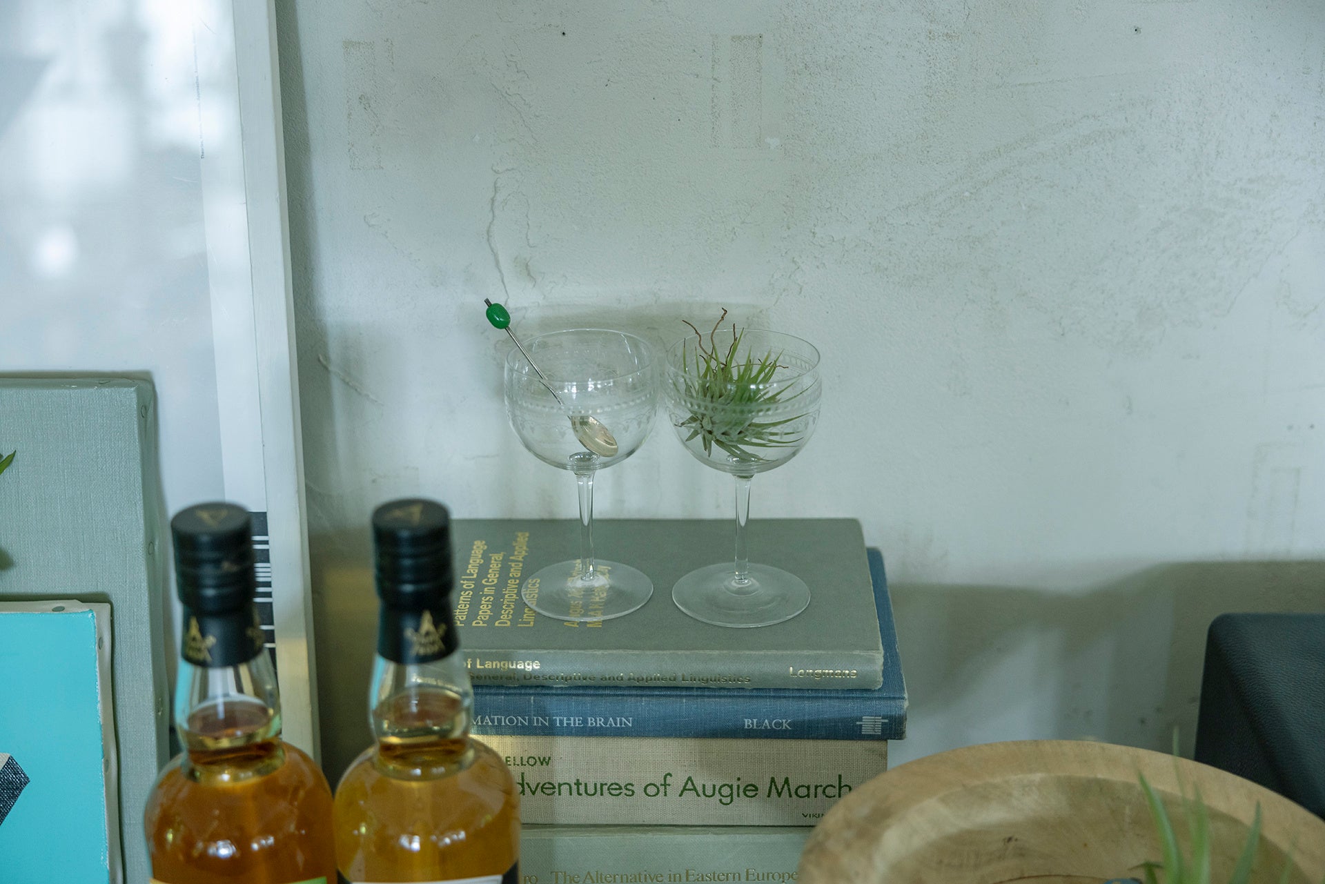 展示空間は、“ウイスキーブレンダーの家”という設定のもと、COMPASS BOXの哲学を「住まい」というかたちで体現したものです。作原氏が手がけたインテリアスタイリングは、木や布の温もり、異素材の重なりによって、ウイスキーの個性や香りが空間の中に自然と溶け込むよう設計されています。