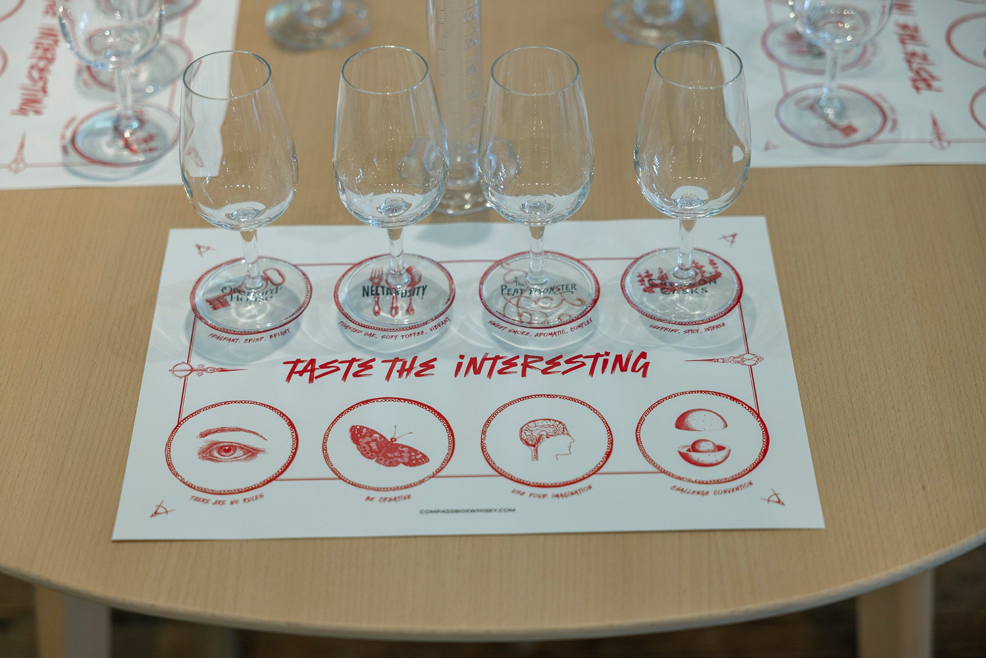 展示空間では、COMPASS BOXの現在を象徴する「コアコレクション」4種それぞれの味わいと個性が、空間演出と呼応するかたちで紹介されました。