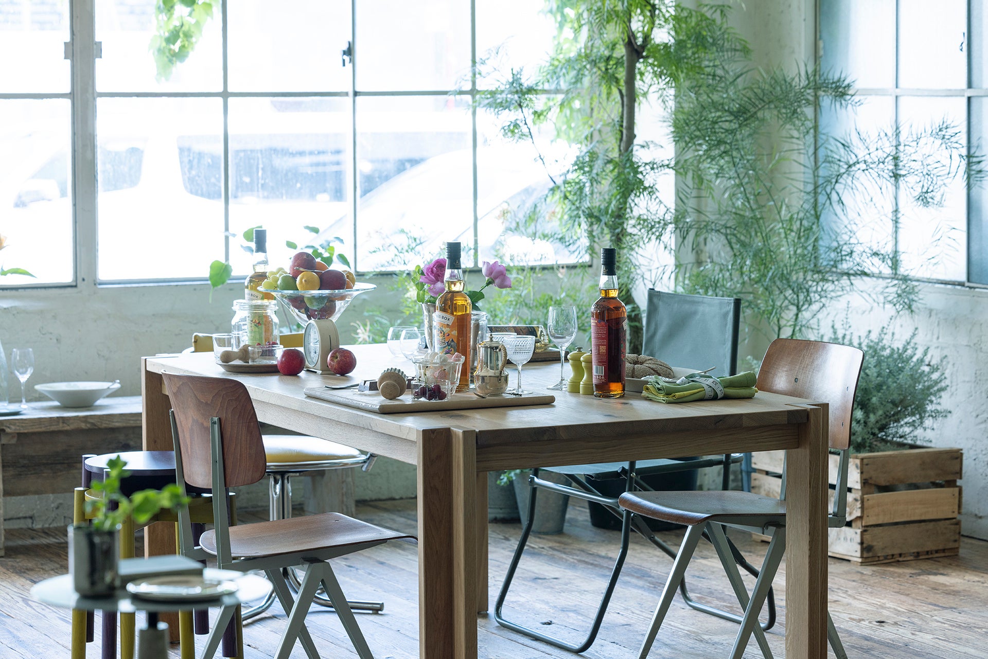 今回の展示では、コアコレクションのエリア全体を"ダイニングシーン"に見立てて構成。ウイスキーが食卓や会話の中心にある暮らしを想起させるような、温もりある生活感の中で、それぞれの個性が映える設計となっています。