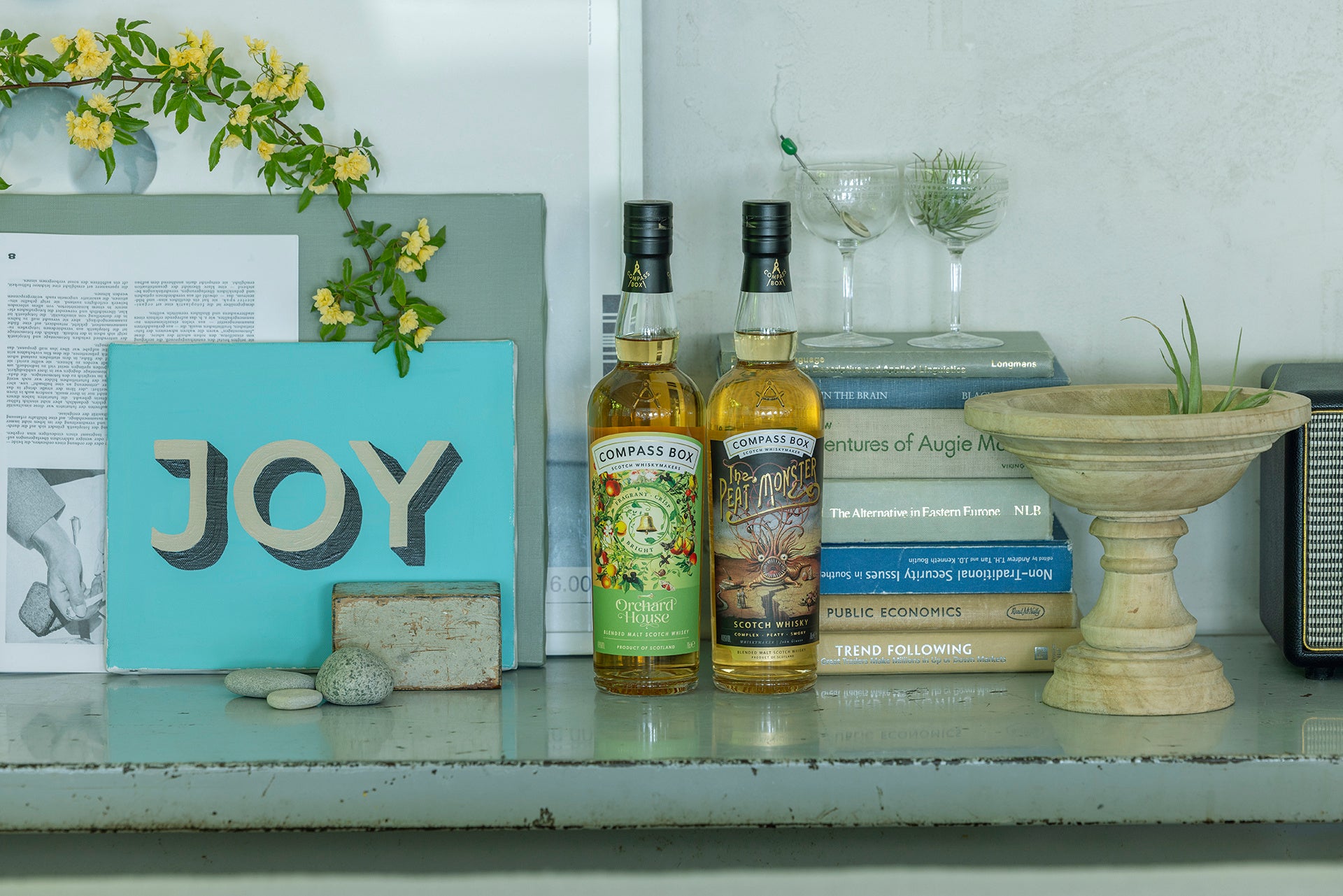 展示会タイトルにも掲げた「The House of COMPASS BOX」は、ウイスキーを“飲む”だけでなく、“住まう”“飾る”“語らう”存在として捉え、日常に溶け込むCOMPASS BOXの魅力を多角的に表現したもの。それはウイスキーが暮らしの中にどのように根付いていくかという、ブランドからの新たな提案でもあります。