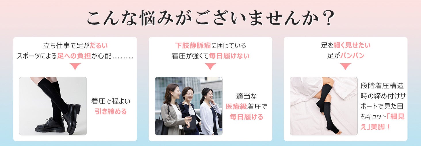 ~むくみ・冷え対策に選ばれる3タイプ(サイズ選択可)を展開~