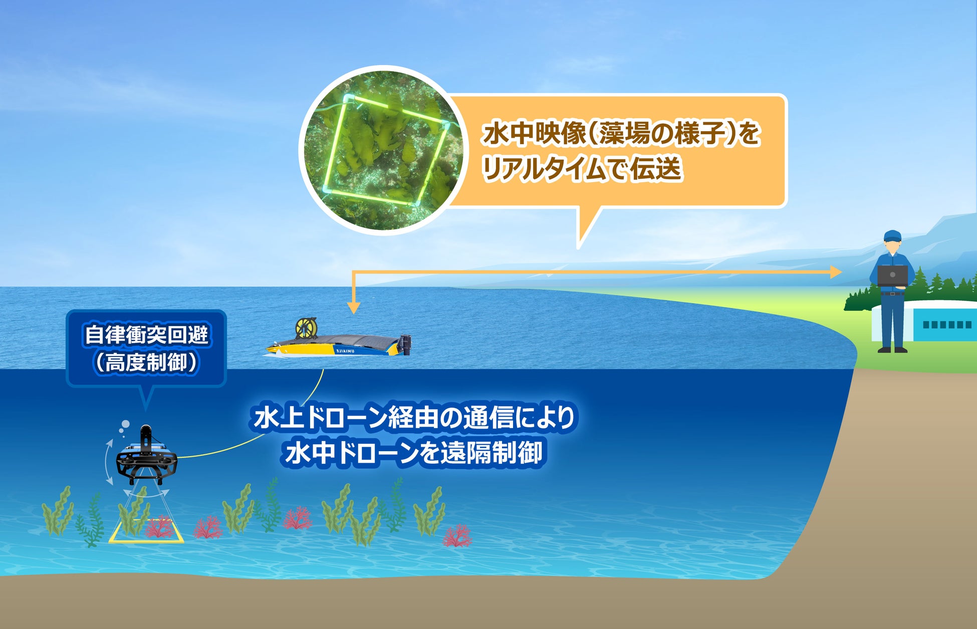 さらなる効率化に向け、水上・水中ドローンの連携技術を実証